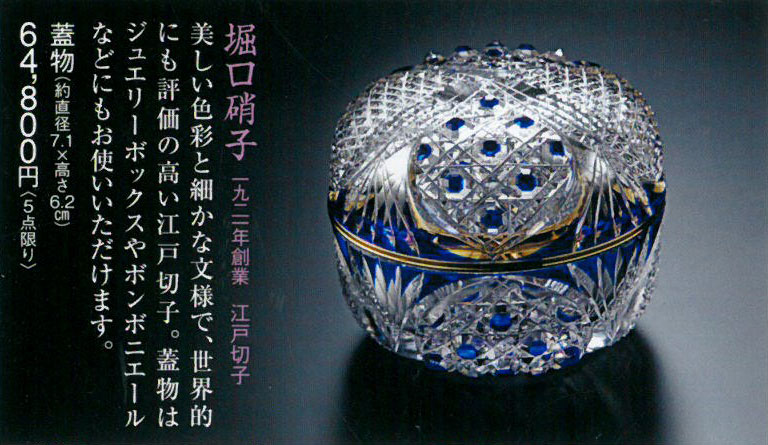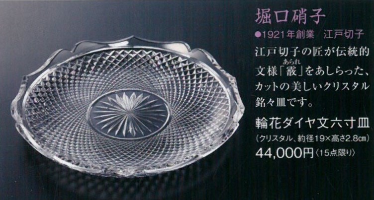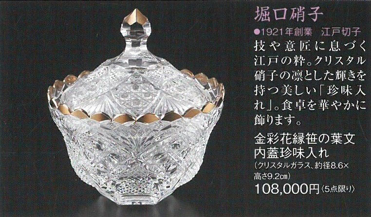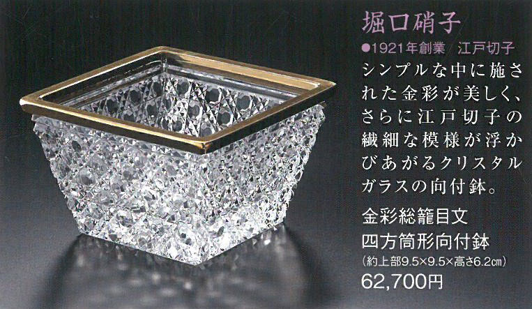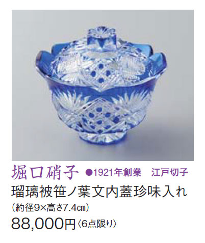 堀口硝子は東京「むらさき会」より出店しており、懐石具なども含め、各品多数取り揃えております。