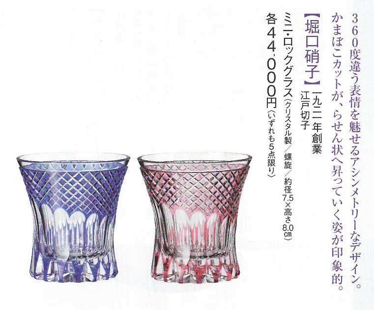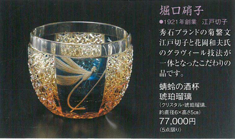 堀口硝子が製作した商品「雀の酒杯琥珀緑、蜻蛉の酒杯琥珀瑠璃、草文の酒杯」が3月7日オンエアのQVCジャパンで紹介されました。